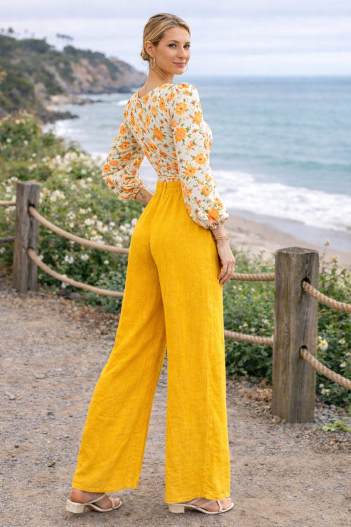 Italian Linen Wide-Leg Pants – Golden Mustard