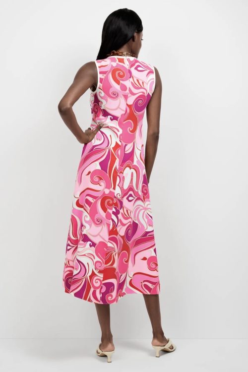 Trina Turk Magnifique Multi Sleeveless Midi Dress – Bold Pink Swirl Print