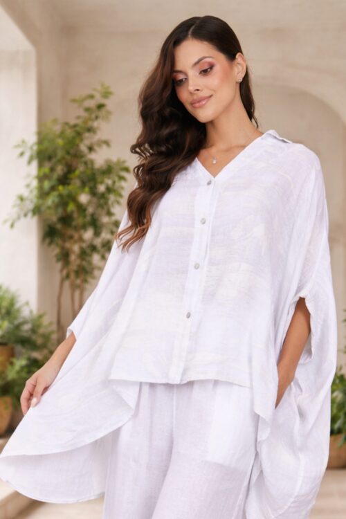 Santorini Breeze Linen Button-Front Tunic Top