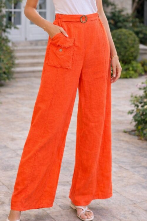 Italian Linen Wide-Leg Pants – Sunset Coral