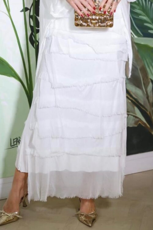 Luna Silk Tiered Maxi Skirt – Soft White
