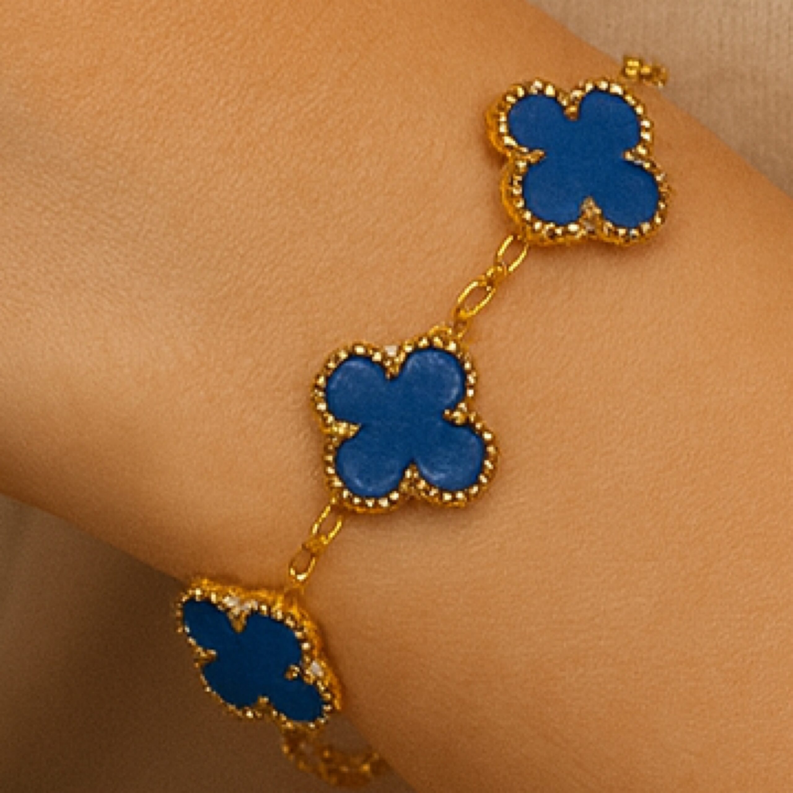 This clover bracelet features a delicate design, symbolizing luck and charm. Its versatile style makes it suitable for everyday wear or special occasions.