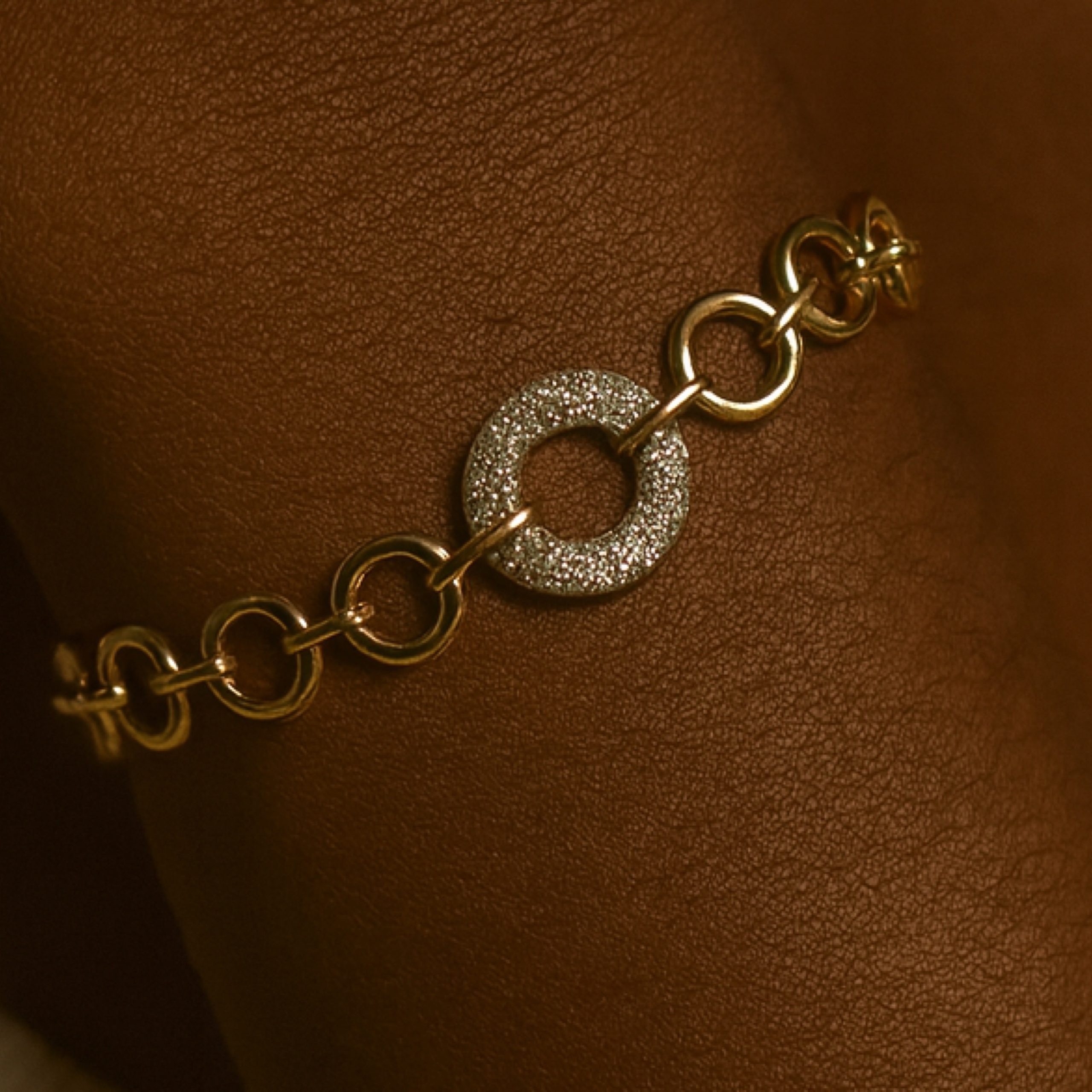 The Pulsera Rings Bracelet showcases a stylish design with interlinked ring details, crafted from durable materials for long-lasting wear. Its adjustable fit ensures comfort and versatility for any wrist size.